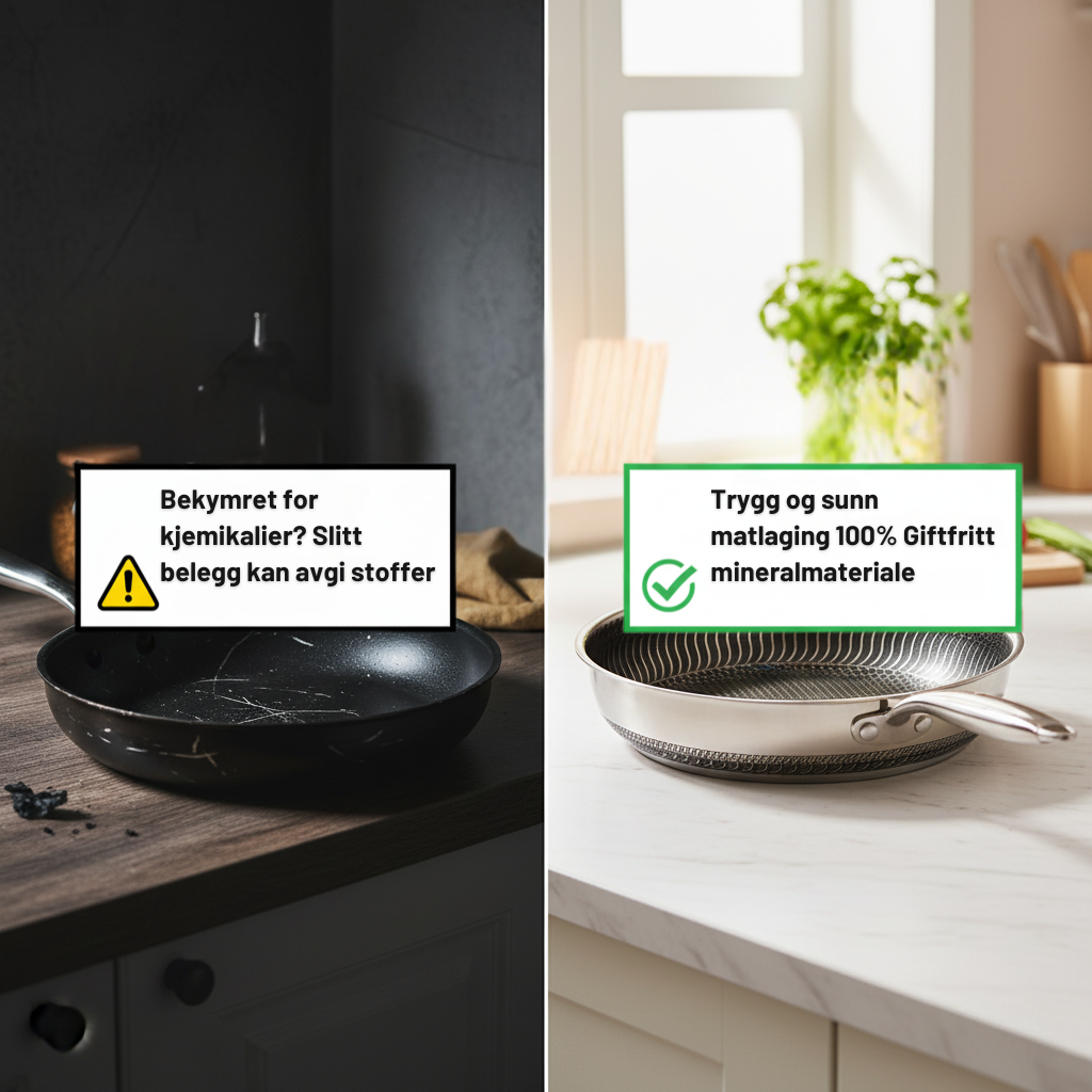 Alt dette – helt uten Teflon, PFAS eller PFOA. Restaurantresultater hjemme, uten å ofre helsen din.