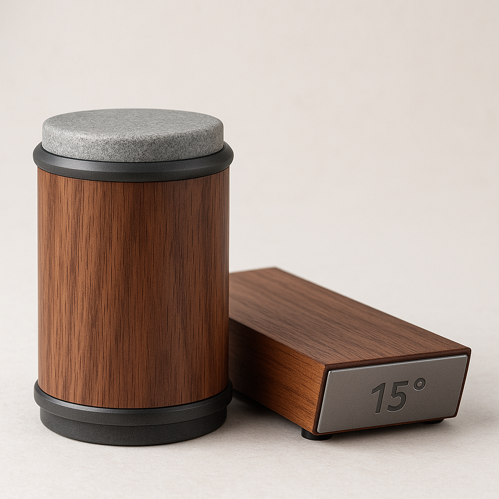 Den magnetiske vinkelguiden holder kniven sikkert på plass med en presis vinkel på 15°, slik at du alltid får profesjonelt resultat uten avansert teknikk.